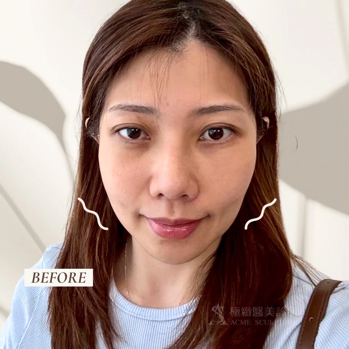 輪廓線條模糊:皮膚失去深層脂肪支撐,造成筋膜層鬆弛,下顎線條變得不俐落。左右臉部不對稱: 除了鬆弛問題,顧客本身亦有兩側臉型脂肪分佈不均的狀況。